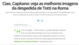 "Veni, vici, Totti", titola il quotidiano francese L'Equipe. "La Roma dice addio all'ultimo imperatore", è invece l'apertura dello spagnolo As. "Un addio emozionante", per gli inglesi del Daily Mail. Un addio "epico" per il Mundo Deportivo. Il portale web brasiliano globoesporte.com apre con un "Ciao capitano", invece, una rassegna delle foto della serata di ieri. Le lacrime del Capitano vengono invece messe in primo piano dall'argentino Olè, che titola "Quando un imperatore piange" il pezzo dedicato all'ultima gara in giallorosso del capitano