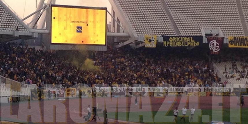 AEK-LIVORNO - Dodici anni di gemellaggio tra il Livorno e gli "Original 21" dell'Aek Atene hanno permesso ai greci di usare al meglio la vetrina amichevole contro la Roma per ribadire l'amicizia con i toscani e per stuzzicare i giallorossi, notoriamente simpatizzanti con l'altro club di Atene, il Panathinaikos, e i suoi ultras del Gate13: "C'è solo Aek-Livorno. Unica e vera fratellanza", lo striscione che campeggiava al centro della curva degli ellenici durante tutto l'arco della partita (27.612 tagliandi venduti per il test-match contro i capitolini). Non l'unico, purtroppo.