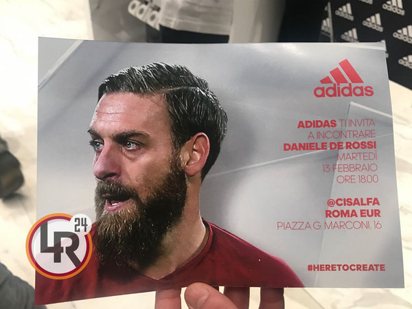 DA PIAZZA G.MARCONI EMANUELE ZOTTI - Nella giornata di oggi, il capitano della Roma Daniele De Rossi, sarà presente al Cisalfa Eur per presentare i nuovi scarpini Adidas, della collezione Cold Blooded. Per l'occasione il numero 16 giallorosso incontrerà i tifosi presenti. L'appuntamento è fissato per le ore 18.