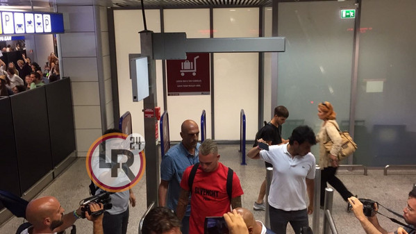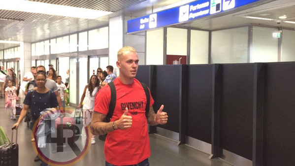 9.40 - All'uscita del Terminal 3 il terzino si è soffermato davanti a fotografi ed operatori tv e ha brevemente rilasciato una stringata dichiarazione ai cronisti presenti: "Sono contento di questa nuova esperienza. Forza Roma"