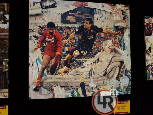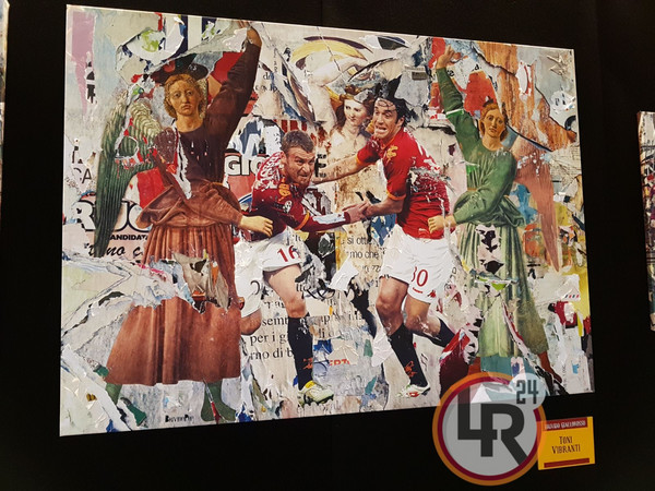 /p>Le parole di Marco Innocenti: "Lo spunto per questa mostra me l'ha dato il fatto che la maggior parte dei bambini vede i calciatori come eroi, sia quelli di ieri che quelli di oggi secondo me sono assimilabili a figure mitologiche, santi. Come Michelangelo sceglieva i profeti da esibire nella volta della Cappella Sistina, per i tifosi è la stessa cosa, con tutto il rispetto per il paragone. Un esempio è l'opera con Florenzi inginocchiato verso la Madonna di Michelangelo, con Tommasi lì vicino nel ruolo del chirichetto. L'immagine di Alessandro è stata presa dalla partita contro il Torino di due anni fa, quando si inginocchiò verso il guardalinee al secondo rigore negato alla Roma. Se vogliamo poi il miracolo è accaduto in quanto entrò Totti e fece due gol in pochi minuti. Il gesto di Florenzi può essere preso come una preghiera in quel preciso istante".