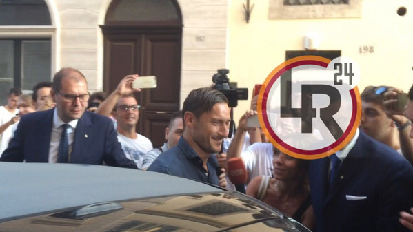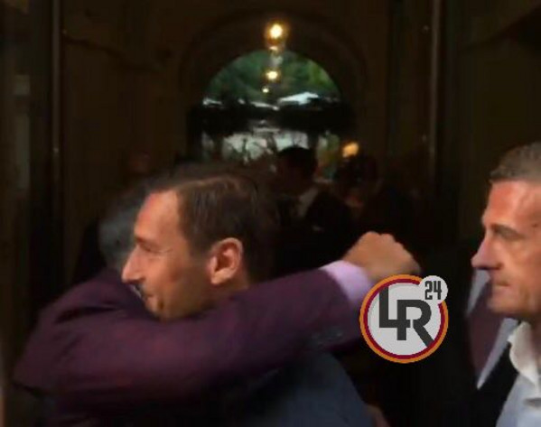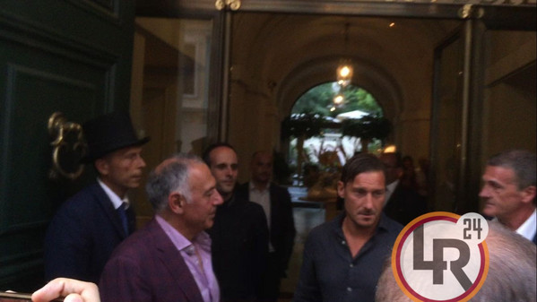 20.30 - Francesco Totti esce in questi istanti dall'Hotel assieme al presidente Pallotta. I due, che si sono abbracciati, posano per le foto di rito. Il Capitano risponde con qualche battuta alle domande dei cronisti: "Se ho firmato? Non ancora, ma lo farò presto".