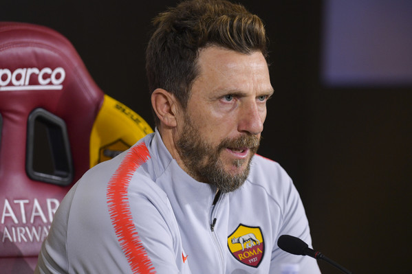 "Domani è più difficile, ma in futuro o durante la partita sì. Florenzi domani giocherà terzino. Fazio è recuperato. Prima di passare in conferenza sono passato al Divino Amore perché abbiamo un altro problema ora: Manolas ha preso un colpo durante la partitella, il suo utilizzo ad oggi è al 50%, verrà in ritiro e lo valuteremo domani. Ha preso un brutto colpo sulla gamba e quasi non cammina. La speranza è che recuperi in tempi brevi, siamo in pochi e dobbiamo recuperare i giocatori".