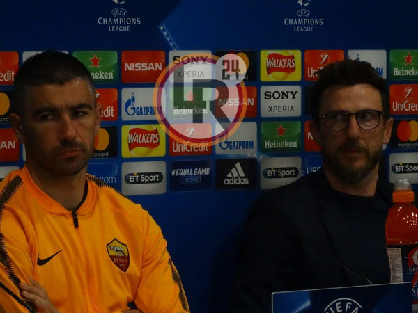 DA ANFIELD ROAD DAMIANO FRULLINI - Eusebio Di Francesco torna a parlare in conferenza stampa. L'allenatore della Roma interviene dalla sala stampa di Anfield alla vigilia del match con il Liverpool, primo atto del doppio confronto della semifinale di Champions League. Al fianco del tecnico giallorosso interverrà in conferenza il difensore Aleksandar Kolarov, che qui ha già giocato ai tempi della sua esperienza al Manchester City.
