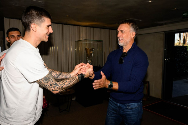 Piacevole sorpresa questa mattina a Trigoria.Gabriel Omar Batistuta, infatti, ha fatto visita al Fulvio Bernardini dopo 23 anni. Il Re Leone ha avuto modo di incontrare Gasperini, Ranieri e Massara oltre che i giocatori. Presente anche il suo ex compagno Vincent Candela.