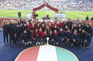 Roma Femminile: giro di campo con la Supercoppa Italiana allo Stadio Olimpico 04.01.2023