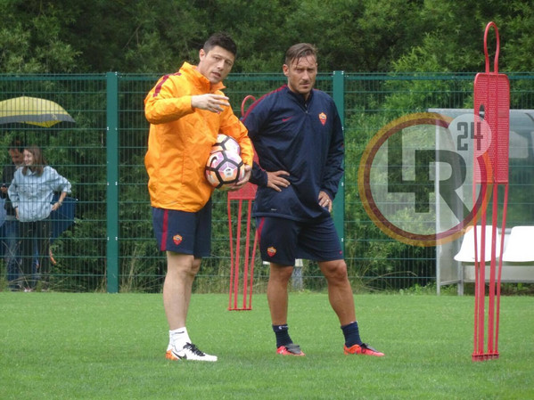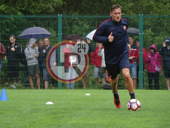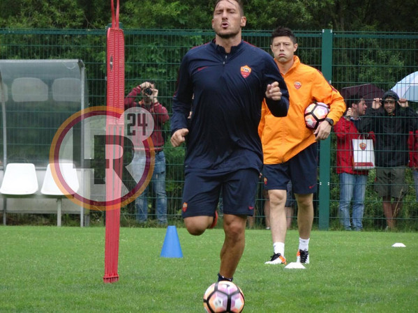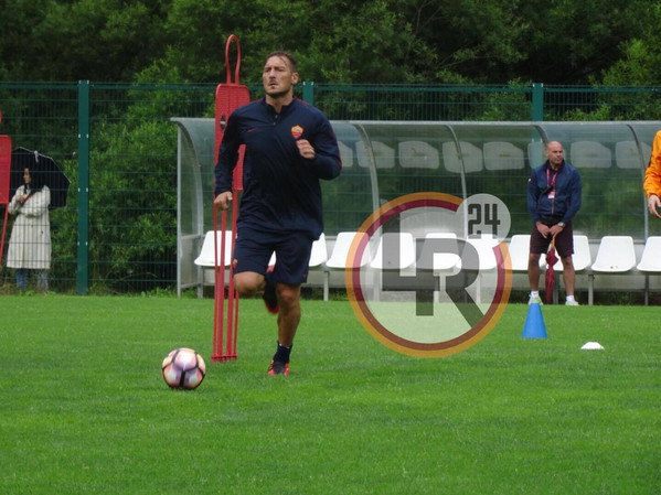 Ritiro Roma, leggera corsa con il pallone per Totti nel pomeriggio 13.07.16
