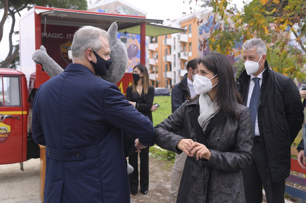 Roma Cares: Virginia Raggi e il CEO Guido Fienga consegnano mascherine presso una scuola della Capitale