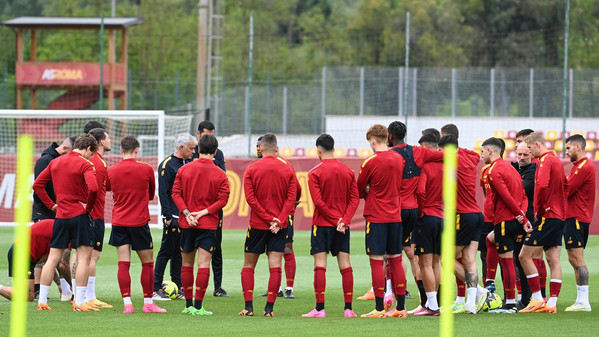 Trigoria: ultimo allenamento prima di Bologna-Roma