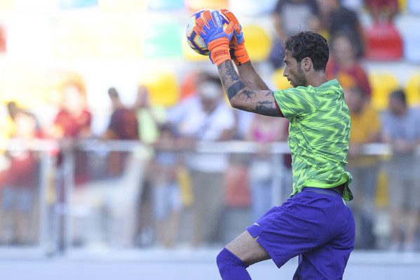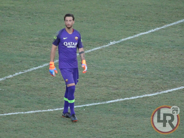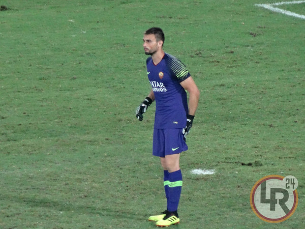 18.34 - Portieri della Roma in campo per il riscaldamento.