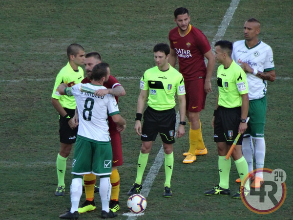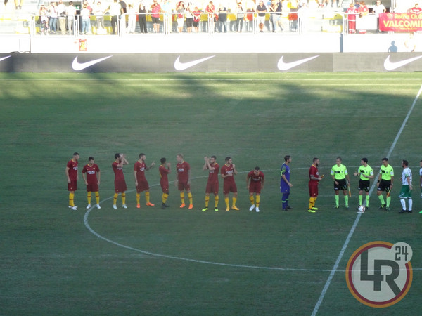 1' - Squadre in campo. La Roma, come già anticipato, giocherà con la prima divisa. Avellino in maglia e calzettoni bianchi e pantaloncini verdi.