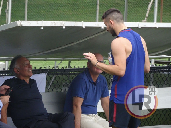 DA BOSTON DAMIANO FRULLINI - Primo giorno a Boston per la Roma e prima seduta di allenamento all'Ohiri Field, presso il complesso della Harvard University. Puntuale il presidente James Pallotta che dopo un veloce saluto con tutti i giocatori e lo staff giallorosso, si è intrattenuto in un colloquio di circa 5 minuti con Kostas Manolas tra battute e risate che lasciano presagire a una conclusione positiva della trattativa per il rinnovo del contratto del difensore greco.