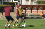 15.50 - Riscaldamento in corso. Presenti anche Bruno Peres, Emerson Palmieri e Perotti