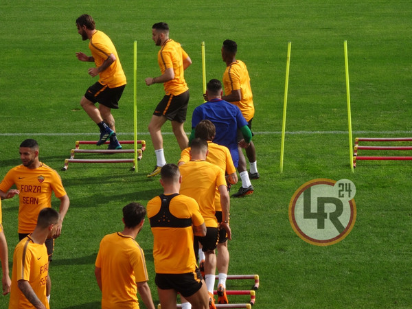 18.04 - Allenamento terminato, restano in campo alcuni giocatori per provare le conclusioni a rete e i calci di rigore. Nella parte tattica Di Francesco ha provato la squadra a tutto campo. Nel finale provate anche le soluzioni su calci piazzati. Domani mattina ci sarà il risveglio muscolare e probabilmente l'ultimo possibile provino per Kevin Strootman, che potrebbe farcela almeno per la panchina.