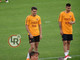 16.50 - Squadra in campo, si inizia il torello. Giocatori in cerchio con due giallorossi in mezzo, i primi ad iniziare sono Under e Petrungaro (attaccante della Primavera)