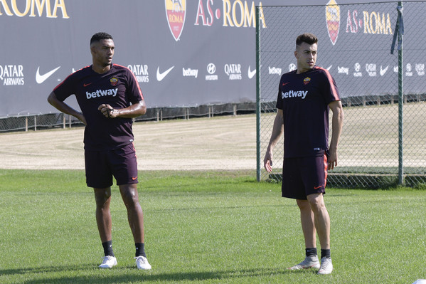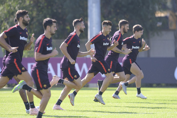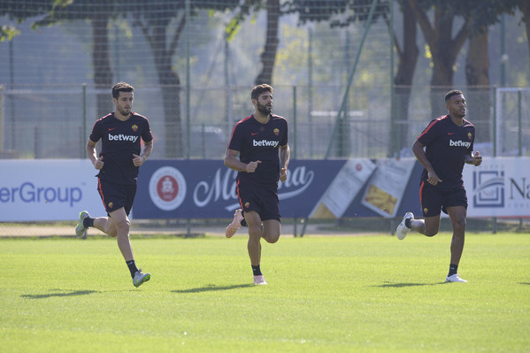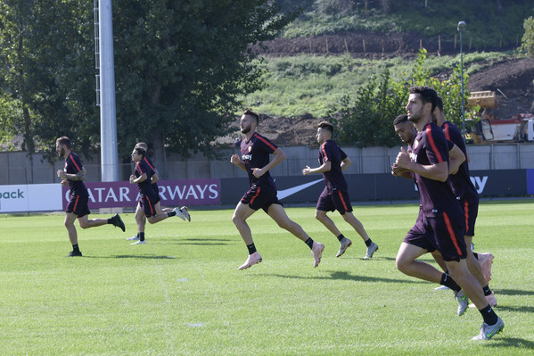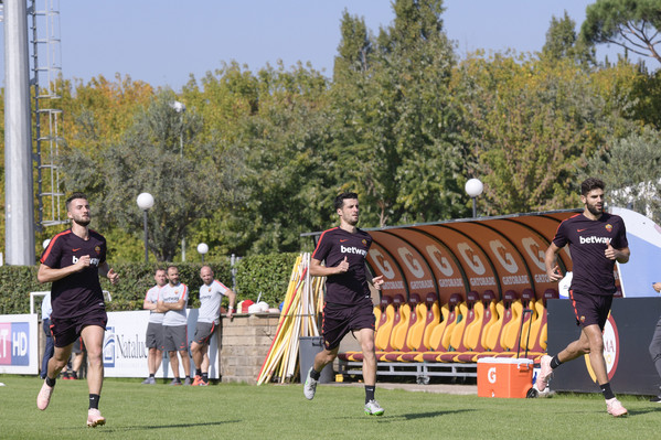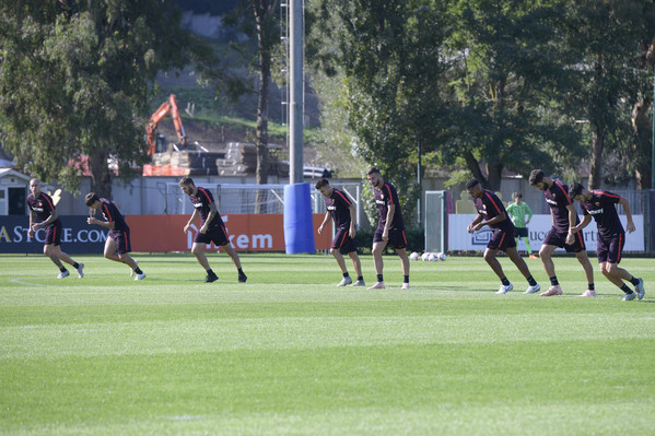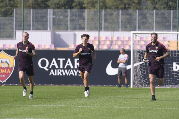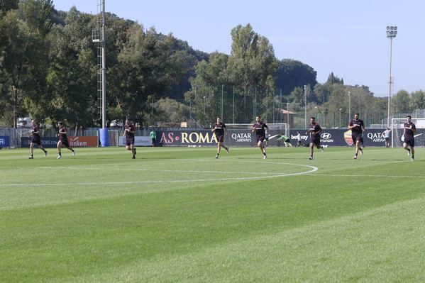 Prosegue il lavoro a Trigoria senza gli 11 nazionali. Seduta tecnico-tattica per i ragazzi di Di Francesco, con Aleksandar Kolarov e Daniele De Rossi che hanno svolto lavoro individuale in palestraa, in recupero dalla frattura della 5 falange del piede sinistro. Lavoro individuale sul campo, invece, per Javier Pastore, infortunatosi durante il derby. Queste le immagini dell'allenamento odierno: