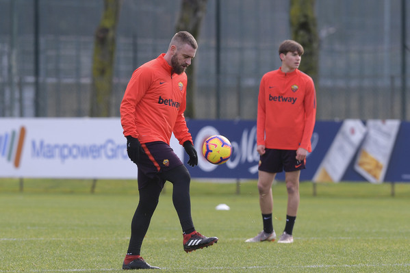 Dopo circa tre mesi di stop per il problema alla cartilagine del ginocchio destro che lo ha tenuto fermo, oggi Daniele De Rossi è tornato ad allenarsi in gruppo nella seduta mattutina che la Roma ha svolto a Trigoria. Il centrocampista ha partecipato regolarmente anche alla partitella finale e punta a recuperare per la sfida di Champions League contro il Porto