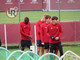 11.52 - Carlos Lalin guida la prima esercitazione tecnica: giocatori in 4 gruppi, che si scambiano velocemente il pallone di prima