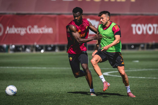 La Roma è tornata in campo nel pomeriggio a Trigoria per proseguire la preparazione in vista della sfida contro la Fiorentina. La novità principale della giornata riguarda Manu Koné, che è tornato a lavorare regolarmente insieme al resto del gruppo. Hanno invece svolto un lavoro differenziato gli infortunati Lorenzo Pellegrini e Artem Dovbyk. Assente con permesso autorizzato Robinio Vaz: l'attaccante riprenderà regolarmente gli allenamenti nella seduta prevista per domani.